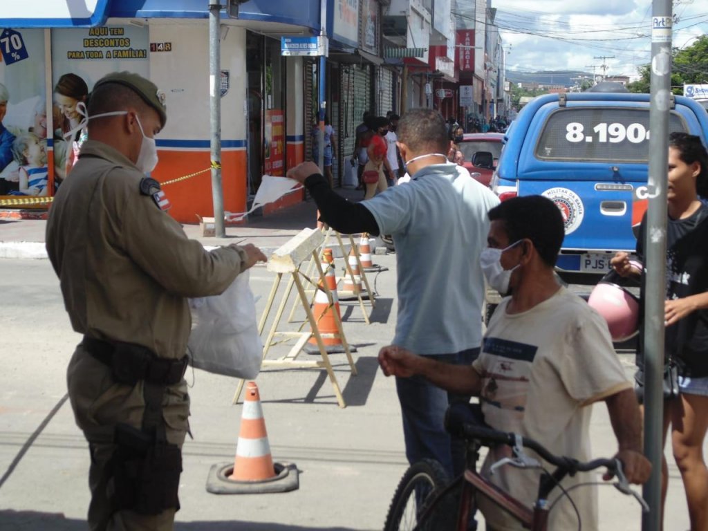 Cerca de 550 máscaras foram doadas nas cidades de Jequié, no sudoeste; e Tanquinho, no Portal do Sertão. A iniciativa partiu de policiais militares como forma de ajudar no controle do novo coronavírus. Em Jequié através do sargento Tadeu Santos Santana, lotado na 6ª Companhia do 19°BPM e da esposa dele Vanusa Soares, que é artesã. As máscaras de TNT foram confeccionadas por Soares e entregues à população carente do município. “Nós precisamos, neste momento, pensar ainda mais no próximo. São muitas vidas que serão salvas com a utilização dessas máscaras”, contou o comandante do 19º BPM, tenente coronel Itamar Gondim.